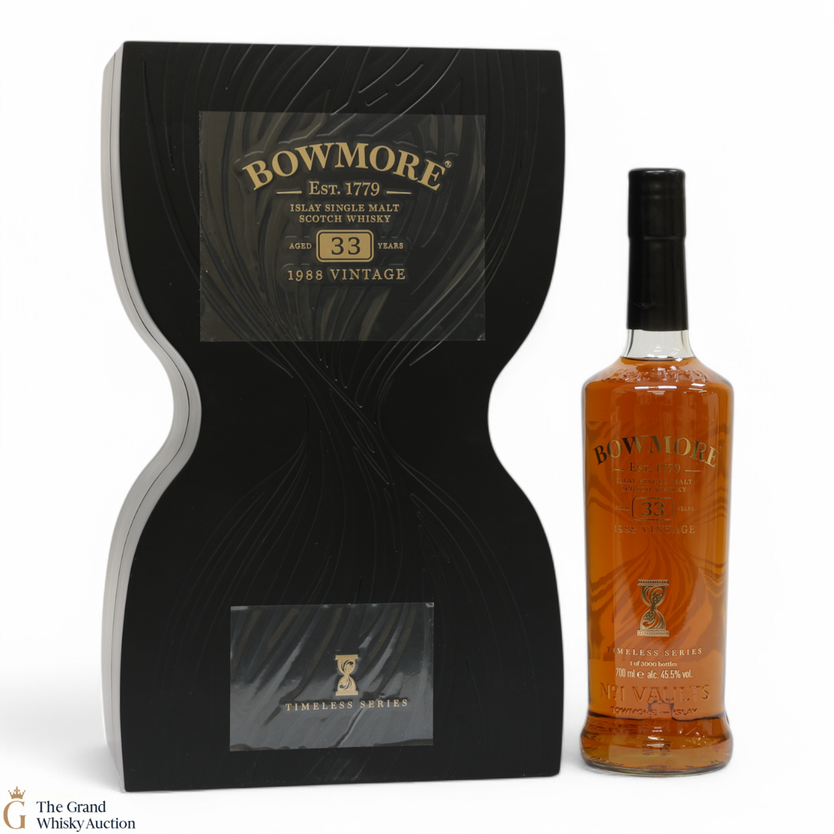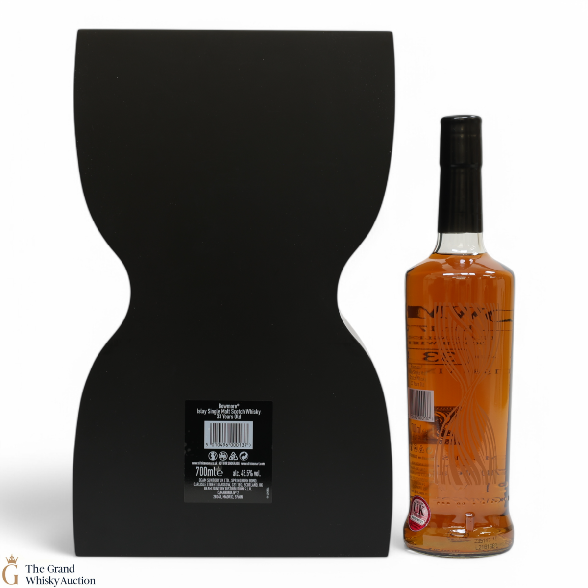 This beautifully presented Bowmore single malt is one of just three thousand released. Matured for a total of 33 years, this Bowmore is a vatting of ex-bourbon barrels and sherry finish, shaped by Matusalem sherry seasoned butts and 2nd fill European oak oloroso sherry butts. Bottled at 45.5 % ABV.