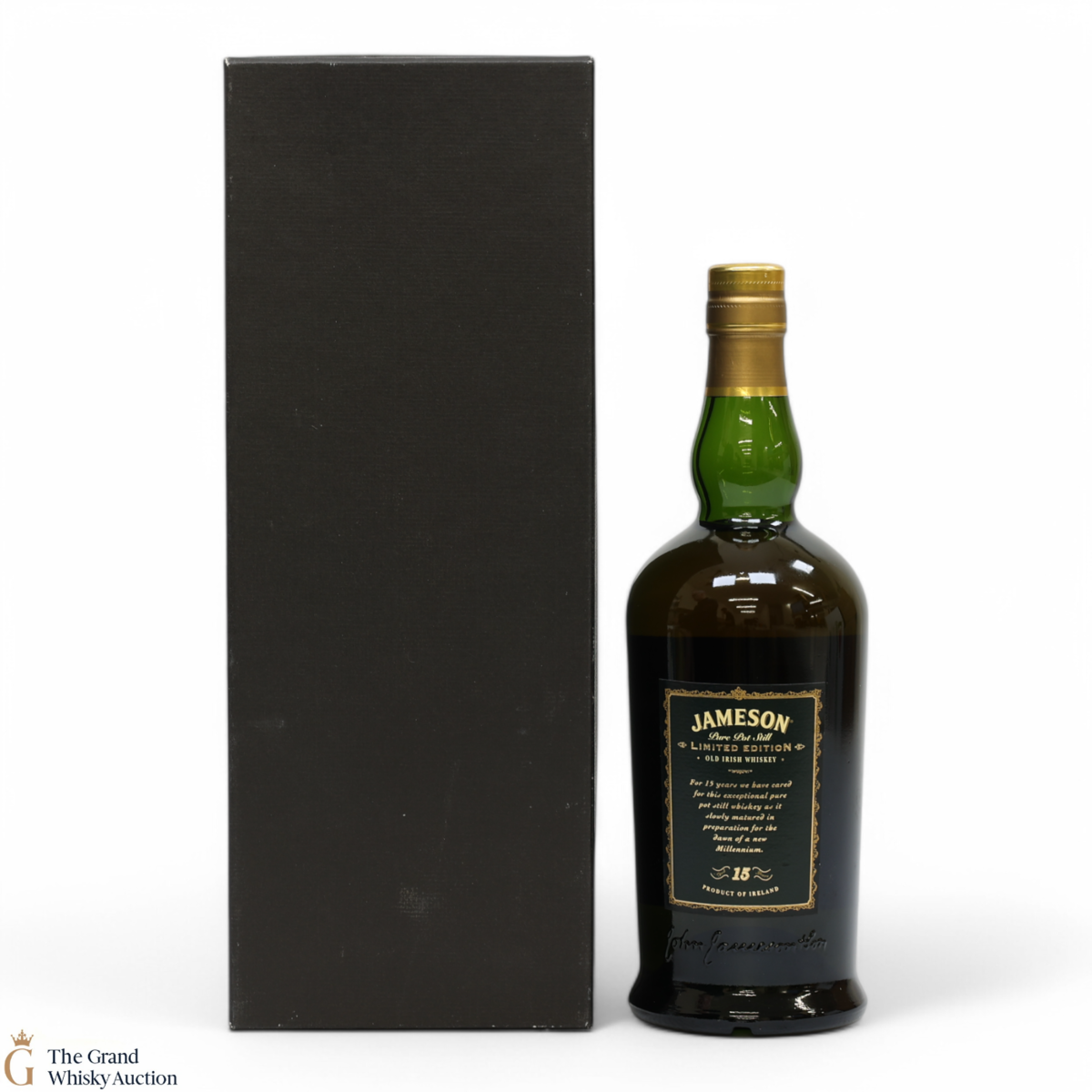 A bottle of Jameson 15-Year Old Limited edition Pure Pot Still Irish whiskey - triple distilled, matured oak casks and bottled for the Millennium.