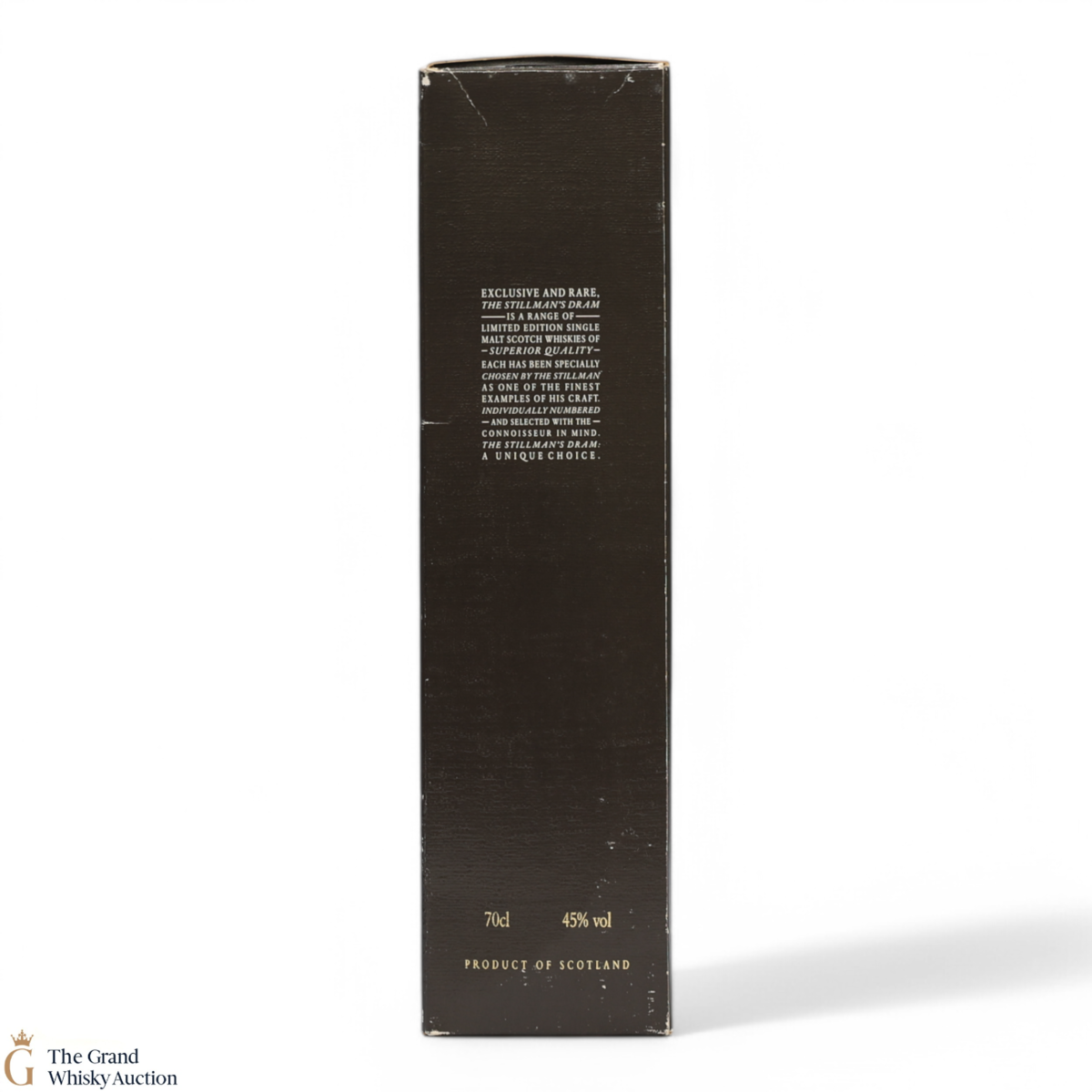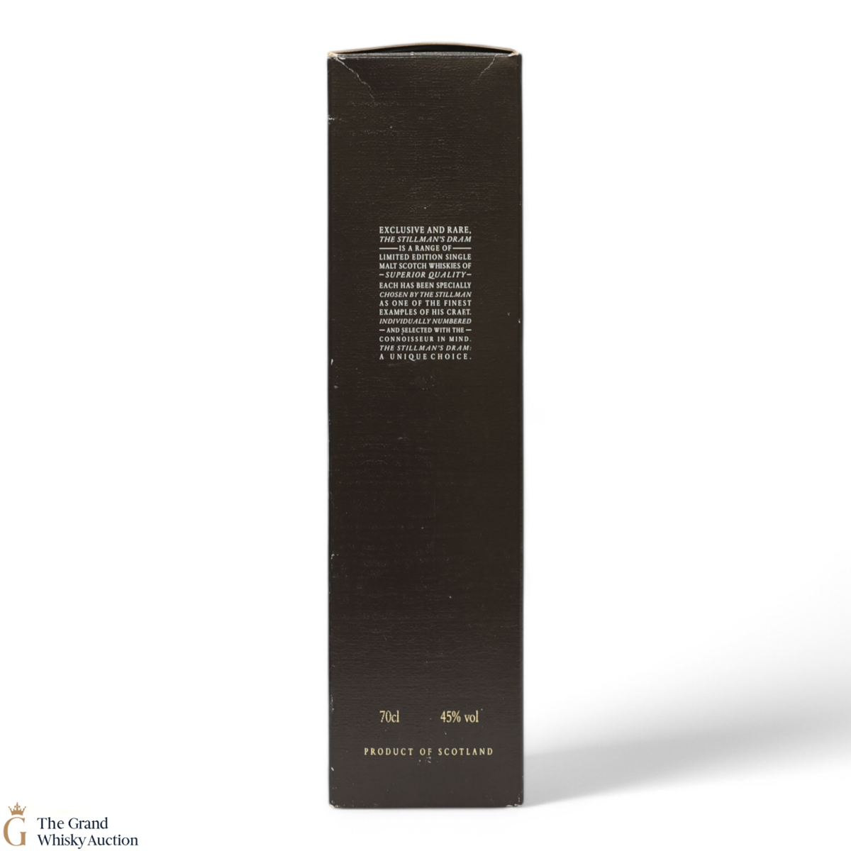 Due to the various ages of bottles and their seals, the condition of liquid is at the buyer's discretion and no claim can be lodged against failure/leakage in transit. Loss and breakage cover is available at 3% of the hammer price as standard. If the lot is not insured, no claim can be lodged against the courier or The Grand Whisky Auction for breakage or loss in transit.