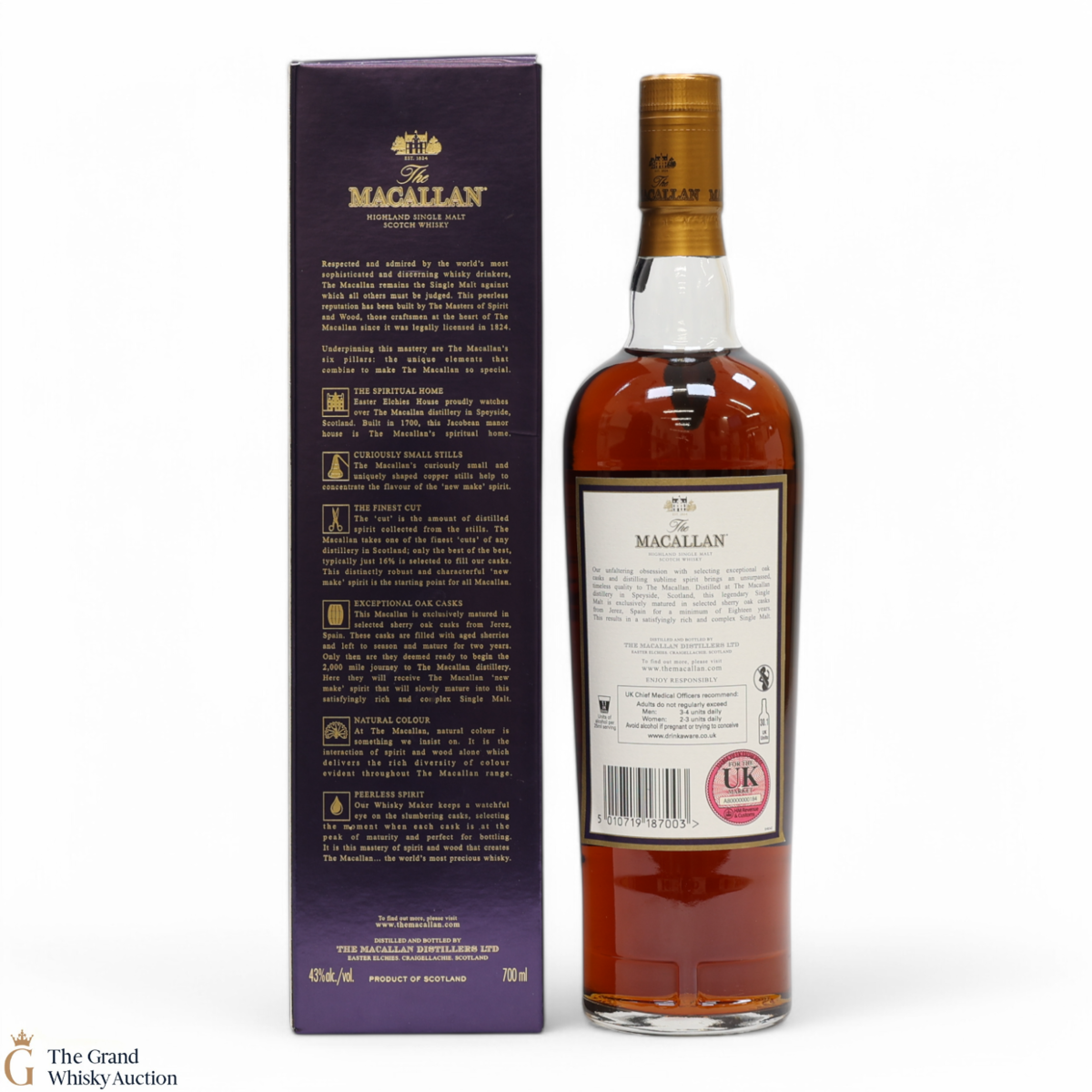 Due to the various ages of bottles and their seals, the condition of liquid is at the buyer's discretion and no claim can be lodged against failure/leakage in transit. Loss and breakage cover is available at 3% of the hammer price as standard. If the lot is not insured, no claim can be lodged against the courier or The Grand Whisky Auction for breakage or loss in transit.