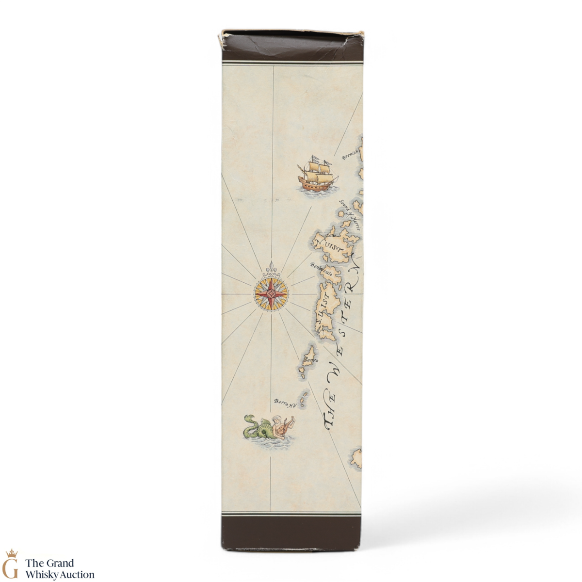 An older release of 10 Year Old from Talisker distillery on the Isle of Skye. Aged for a minimum of 10 years in American oak casks. The bottle label and the box feature a map of Skye. This is a 1L bottle.