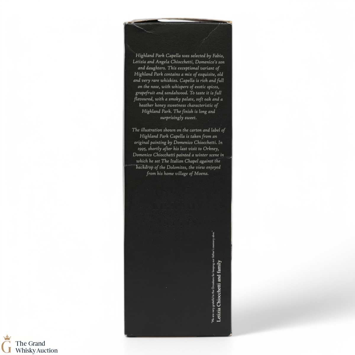 Highland Park Capella was released in 2002. It marks the 60th anniversary of one of the most famous landmarks on the island - The Italian Chapel.