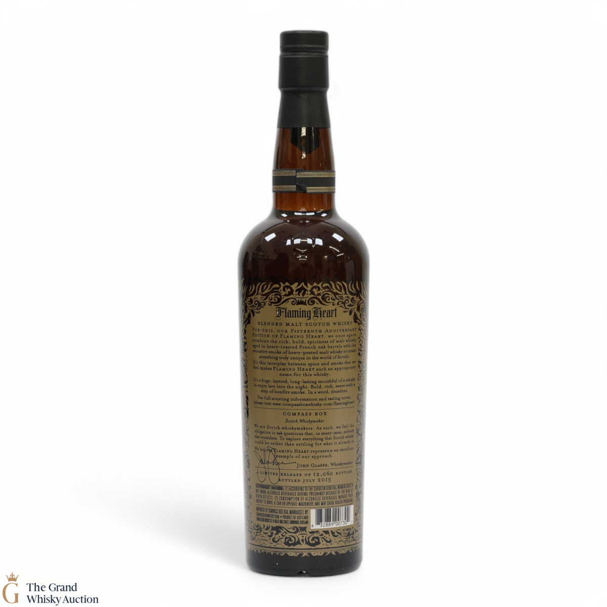 This is the 2015 limited edition bottling of Flaming Heart blended malt by Compass Box.