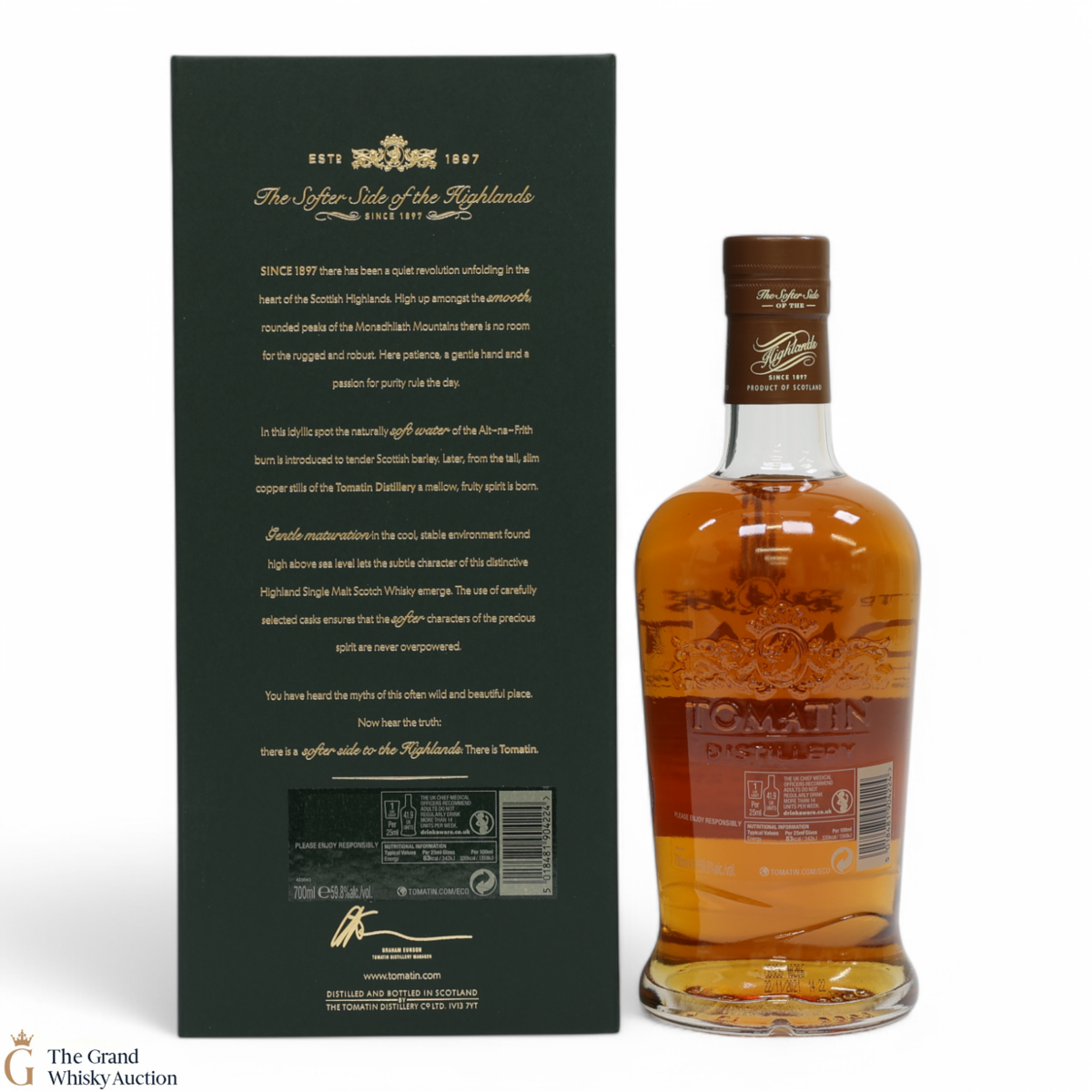 Tomatin Distillery was founded in 1897 by the Tomatin Spey Distillery Company, located in the Highlands between Aviemore and Inverness. Going through various fluctuations in production whilst growing from 2 stills to 23 stills throughout the 60s and 70s before going into liquidation. In 1985 the Distillery was purchased by long-term Japanese customers, Takara Shuzo Co. and Okara & Co. thus becoming the first Scottish distillery to be under Japanese management. Later the prestigious Antiquary blender J&W Hardie was added to the portfolio, and Marubeni bought the distillery. In more recent years production has been downsized to utilise just 10 stills and the decision was made to focus on the single malt range, such as the ‘Cu Bocan’ expression released in 2013.