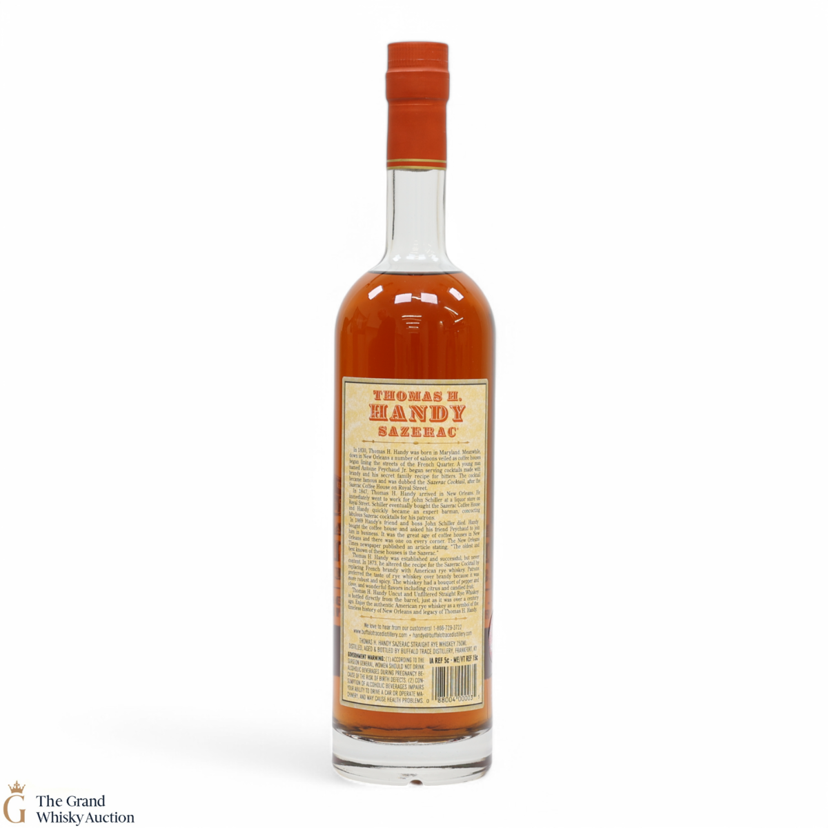 This collection is dubbed the antique collection and celebrates famous figures. The companies founder, Thomas H. Handy, is on the front of this bottle with the picture of the Sazerac Coffee House where everything started.