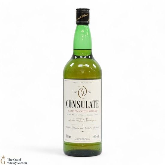 Consulate is a blend combining Speyside and Highland malts with Lowlands grain whisky. It is bottled by Andrew D. Thomson. This is a 1L bottle.
