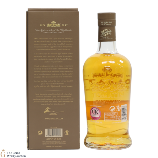 This is a no-age-statement release from Tomatin Distillery. Matured in Bourbon Barrels as well as Virgin Oak Casks before being bottled at an ABV of 43%.