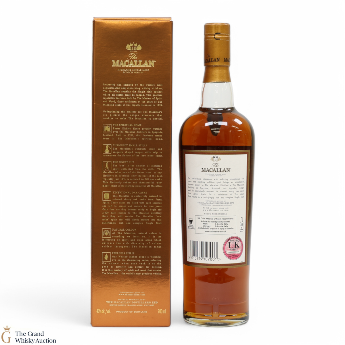 Distilled at the world-renowned Macallan Distillery in Speyside, this single malt was matured exclusively in sherry oak casks from Jerez, Spain. It was aged for a total of 10 years prior to bottling at a strength of 40% ABV.