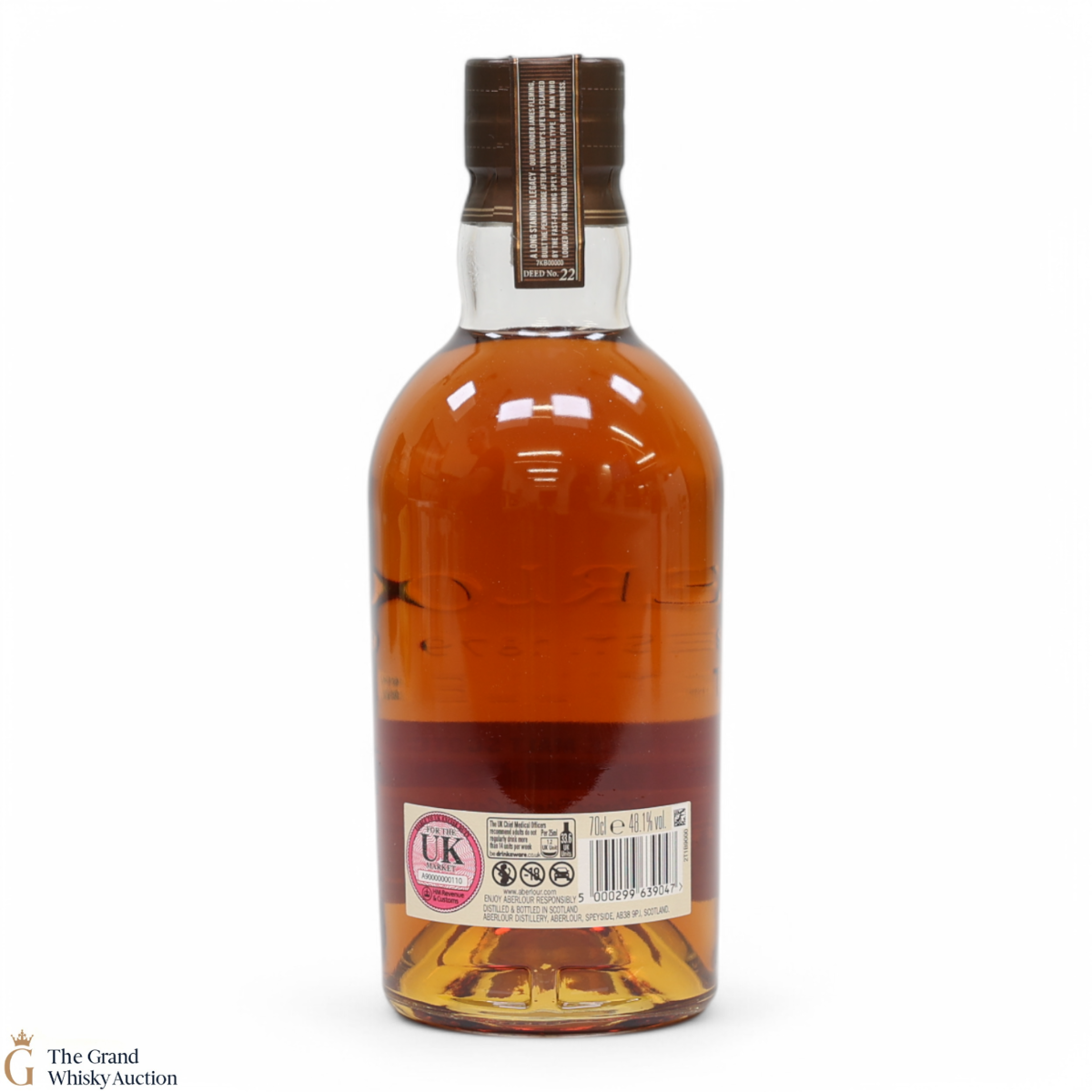 Due to the various ages of bottles and their seals, the condition of liquid is at the buyer's discretion and no claim can be lodged against failure/leakage in transit. Loss and breakage cover is available at 3% of the hammer price as standard. If the lot is not insured, no claim can be lodged against the courier or The Grand Whisky Auction for breakage or loss in transit.
