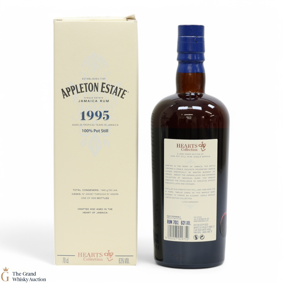 Distilled using small-batch copper pot stills uniquely designed for Appleton Estate, aged for 25 tropical years in Jamaica. Bottled in collaboration with Velier, an Italian distributor from casks #430287 through #430298. Part of the Hearts Collection.