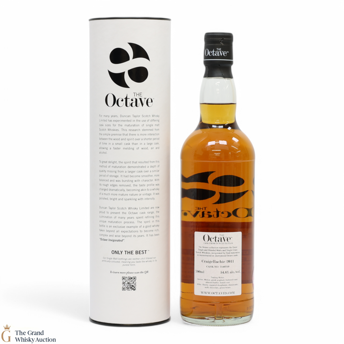 Craigellachie 2011 was matured for 13 years in oak casks and then spent 9 months in Octave cask #7540769. It was bottled in 2024 by Duncan Taylor for their The Octave series. This is one of only 94 bottles produced.