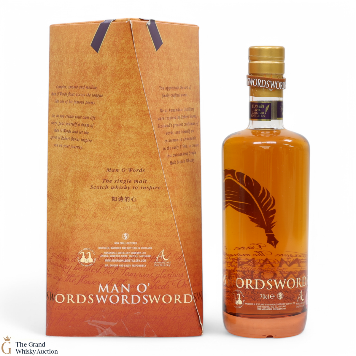 This single malt is from the Annandale Distillery Man O’Word series. Matured in an American Oak Hogshead #588. Bottled at 61.4% ABV.