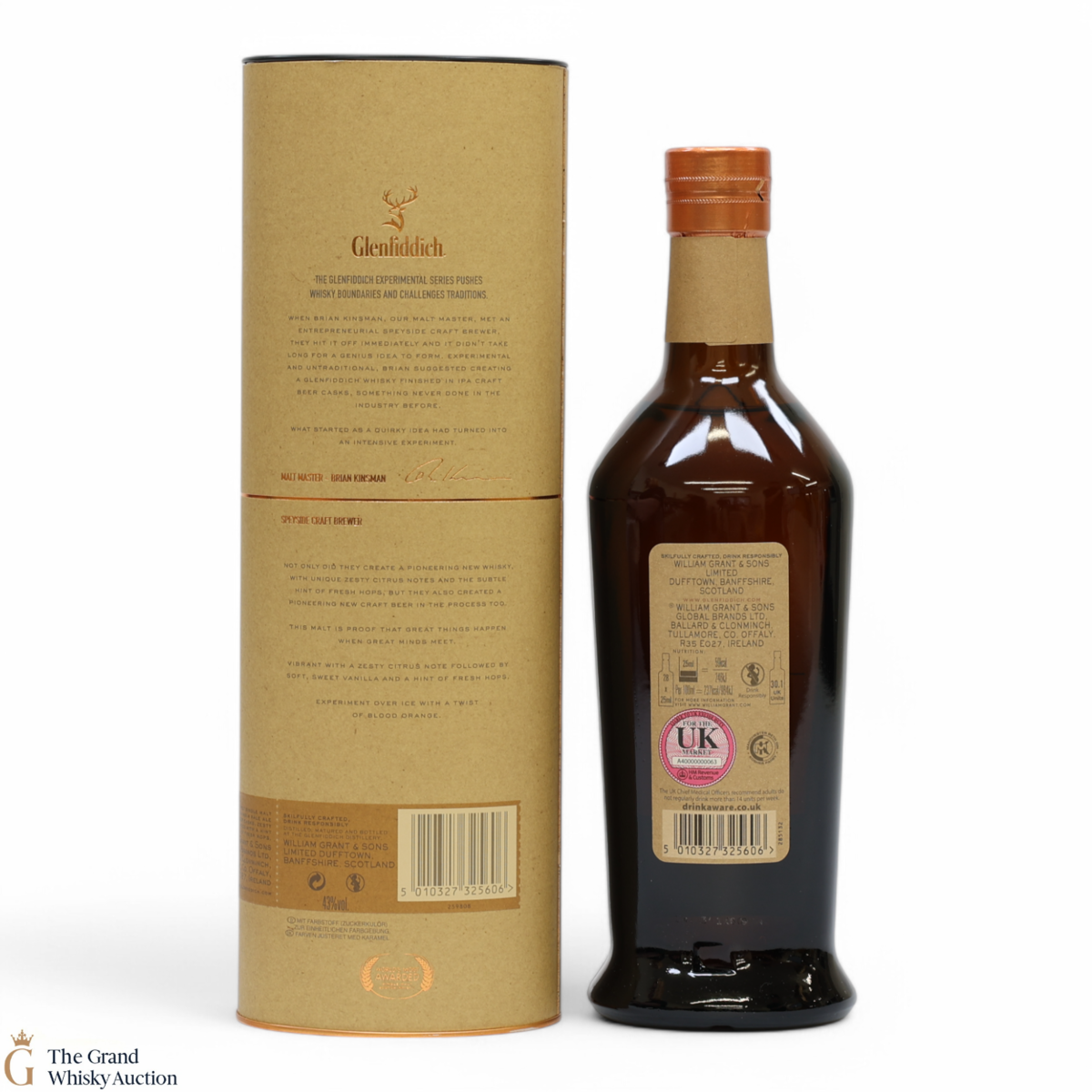From the Speyside distillery, Glenfiddich, this is their Experimental Series. The single malt was finished in bespoke craft IPA barrels. This pioneering malt is imbued with unique zesty citrus notes and the subtle tang of fresh hops.