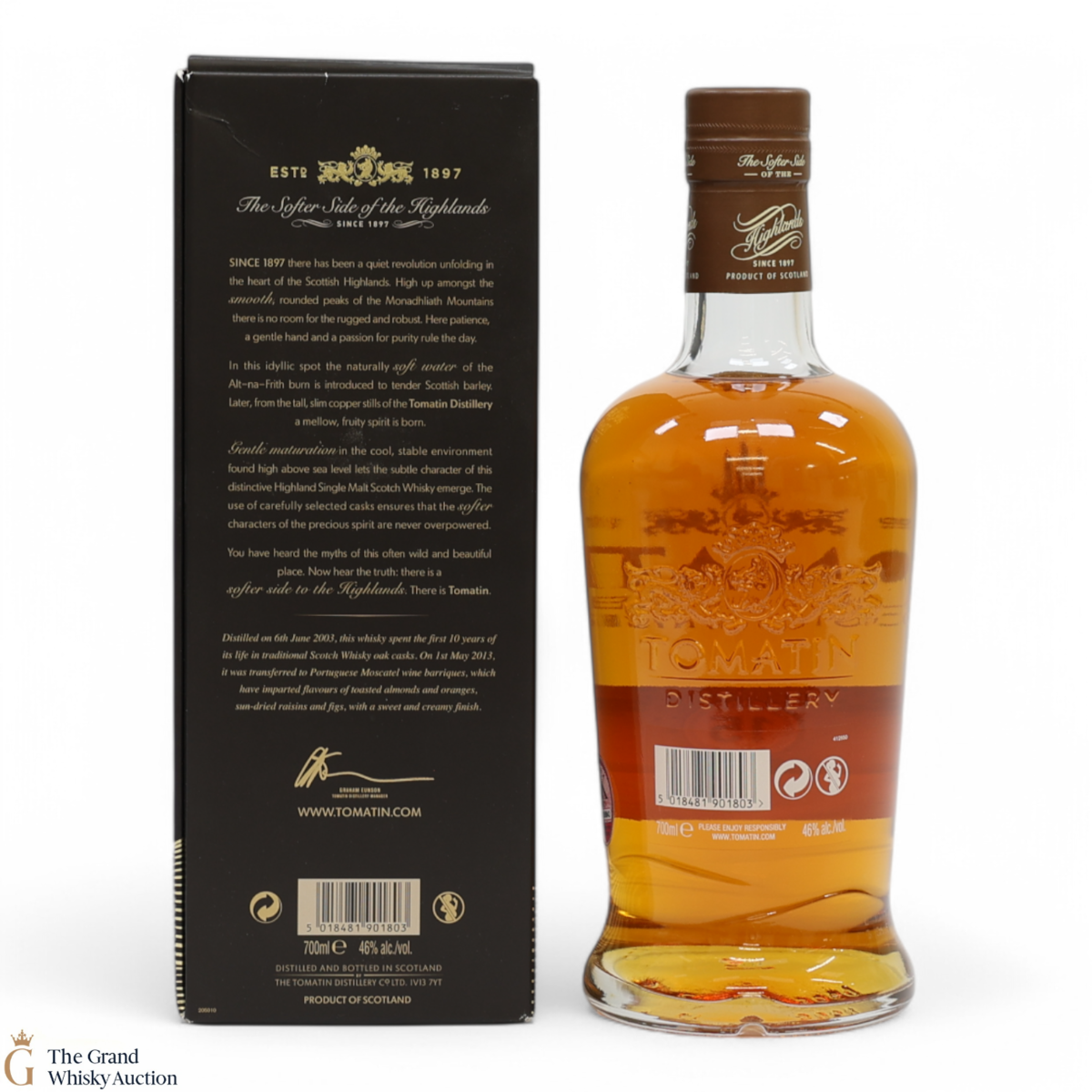Tomatin Distillery was founded in 1897 by the Tomatin Spey Distillery Company, located in the Highlands between Aviemore and Inverness. Going through various fluctuations in production whilst growing from 2 stills to 23 stills throughout the 60s and 70s before going into liquidation. In 1985 the Distillery was purchased by long-term Japanese customers, Takara Shuzo Co. and Okara & Co. thus becoming the first Scottish distillery to be under Japanese management. Later the prestigious Antiquary blender J&W Hardie was added to the portfolio, and Marubeni bought the distillery. In more recent years production has been downsized to utilise just 10 stills and the decision was made to focus on the single malt range, such as the ‘Cu Bocan’ expression released in 2013.