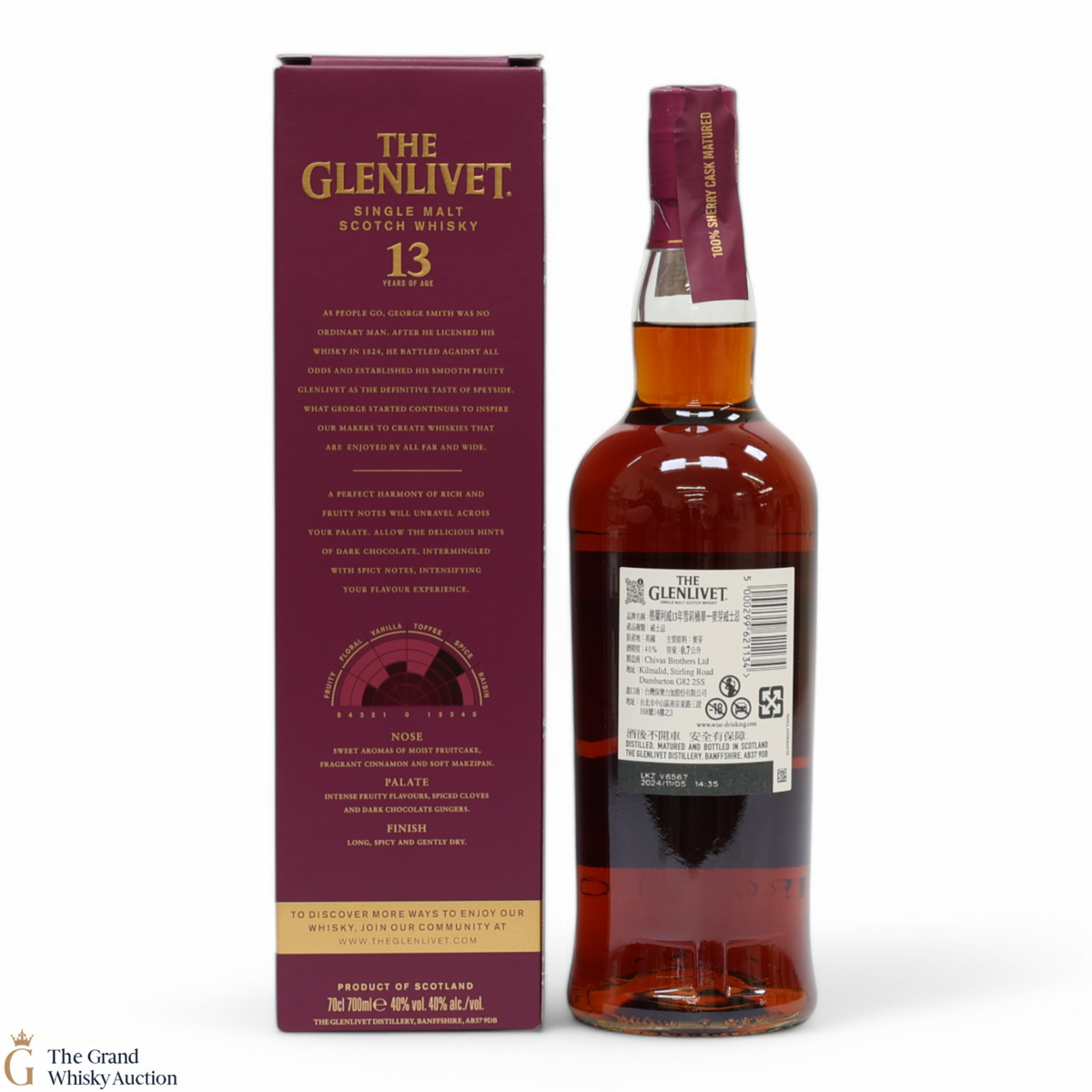 Known as 'The single malt that started it all' for Glenlivet. The Glenlivet 13 Year Old has a soft, smooth balance of sweet summer fruits and the floral notes of spring flowers.