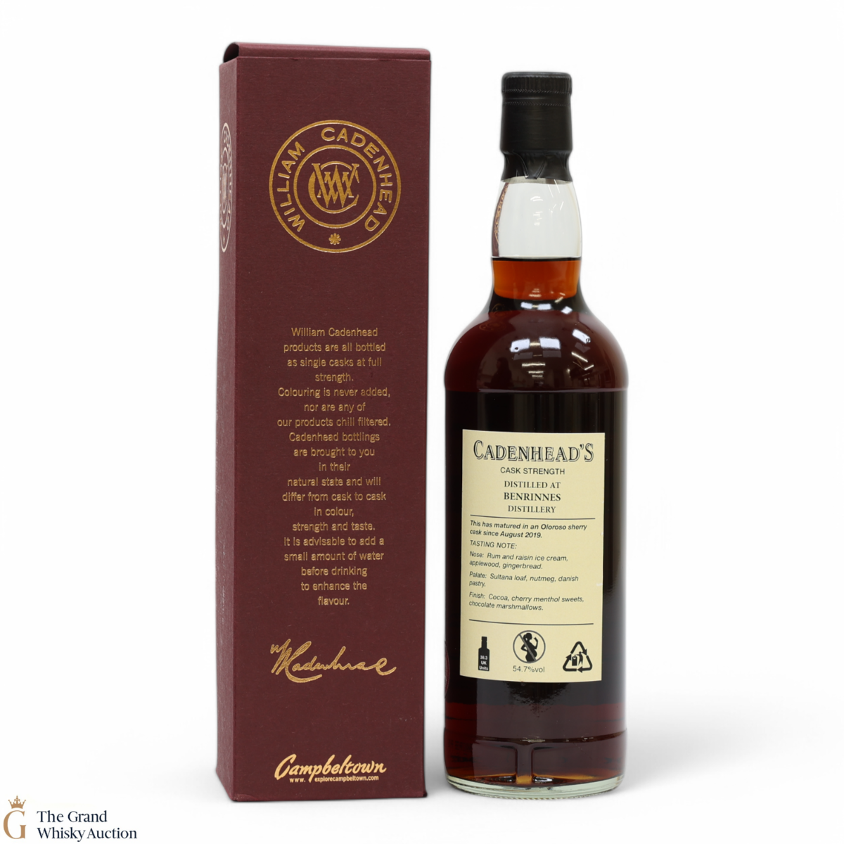 This Speyside single malt was distilled in 2000 at the Benrinnes Distillery. It was bottled by WM Cadenhead in autumn 2020. It was matured in sherry oak casks for 20 years and was bottled at the natural strength of 54.7%.
