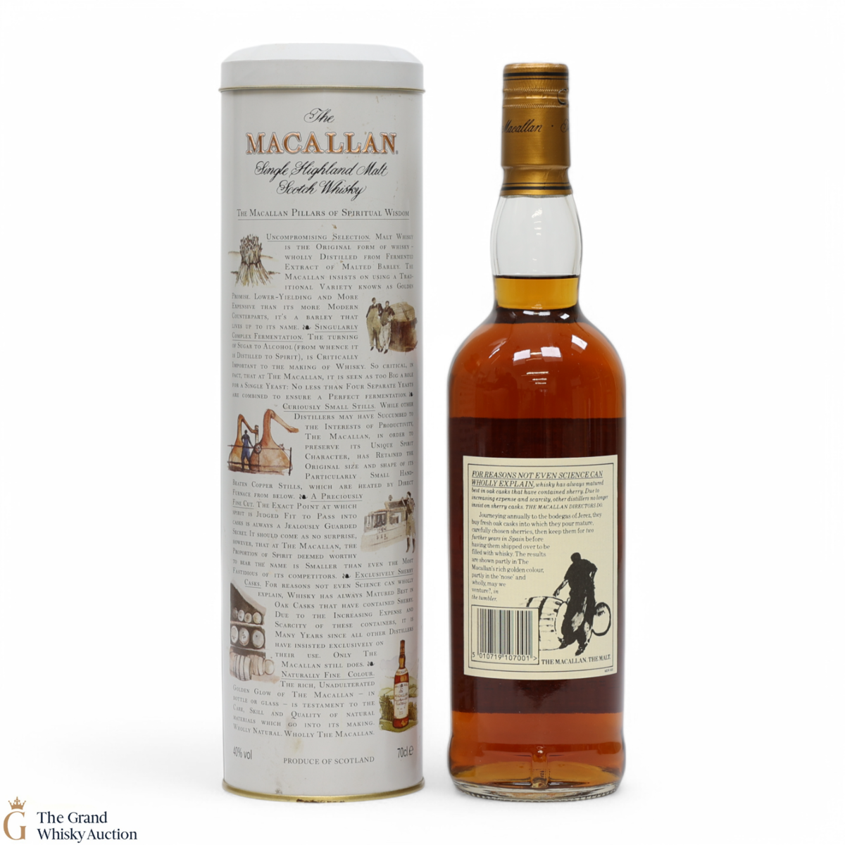 A 1990's bottling of 10 year old Macallan, matured in sherry wood with a presentation tin depicting Easter Elchies House.