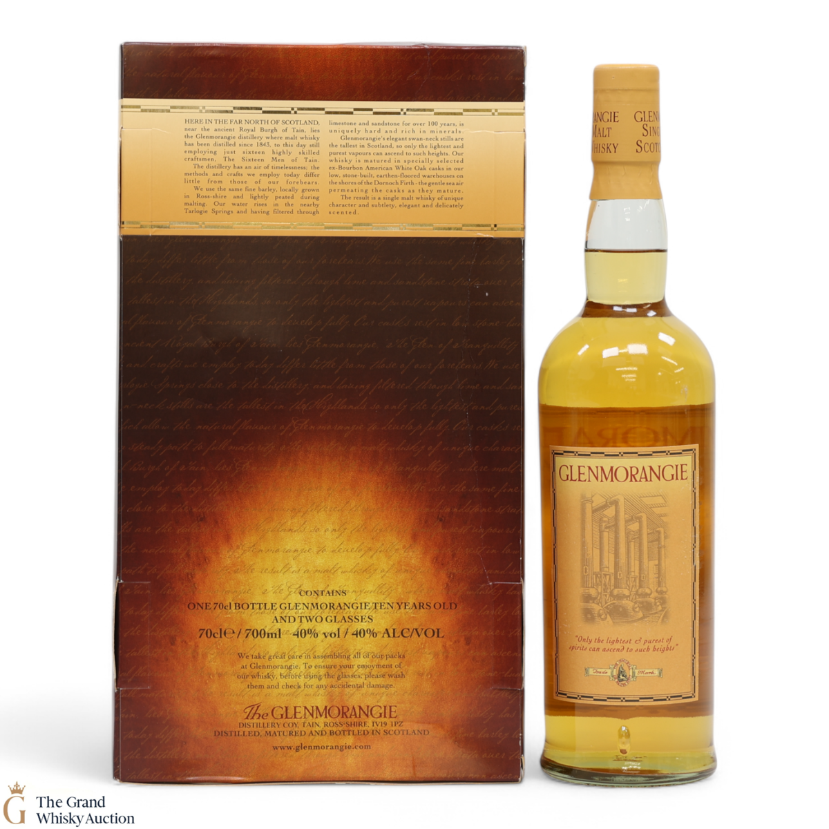 A lovely bottling of Glenmorangie 10-year-old, with presentation box and 2 x branded glasses. The 'original' sets a high standard for Highland whisky, and has gone from strength to strength since its slightly controversial packaging redesign a few years ago.