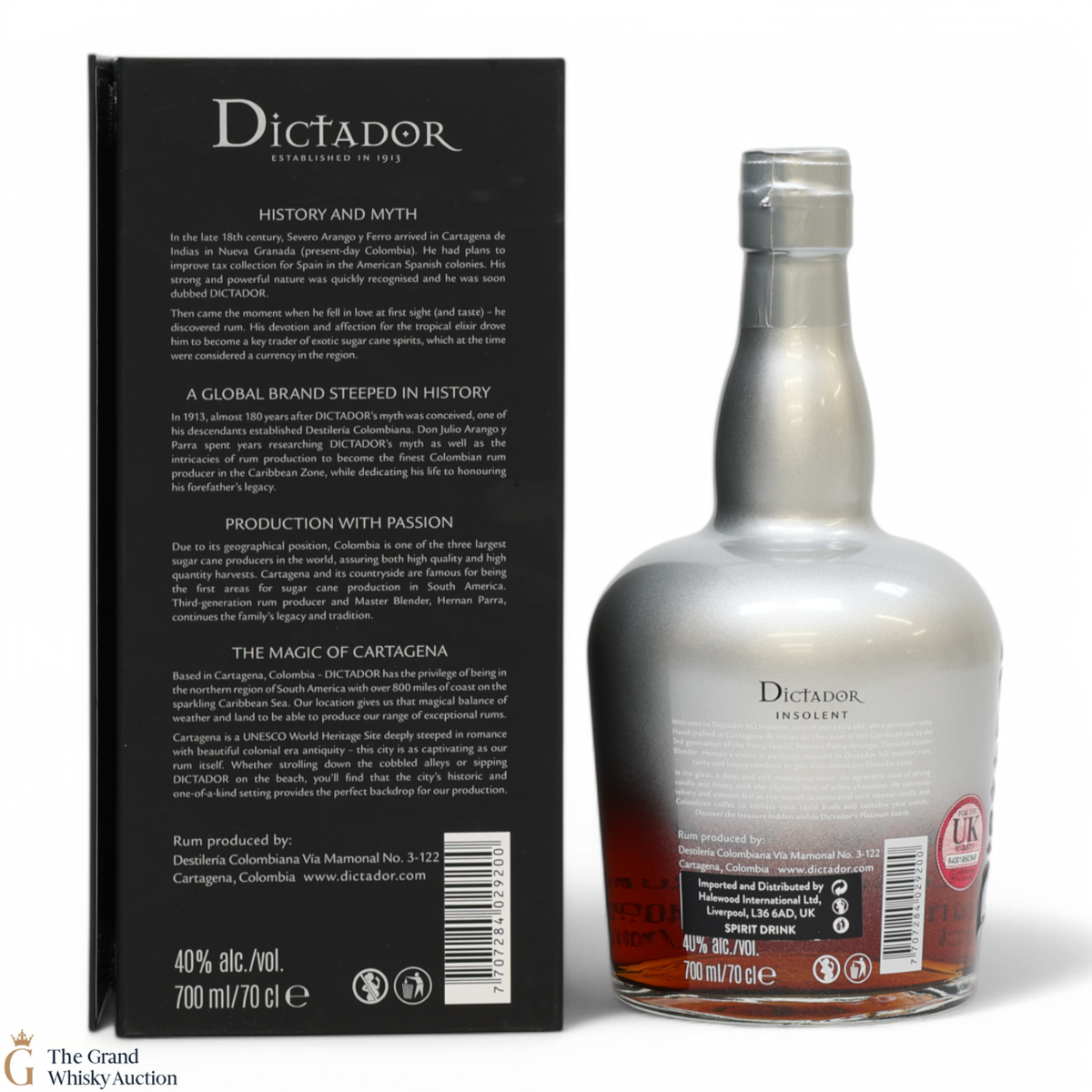 One of a pair of XO rums from Dictador, the Insolent is long matured with a combination of sweetness and dark woody coffee and chocolate.