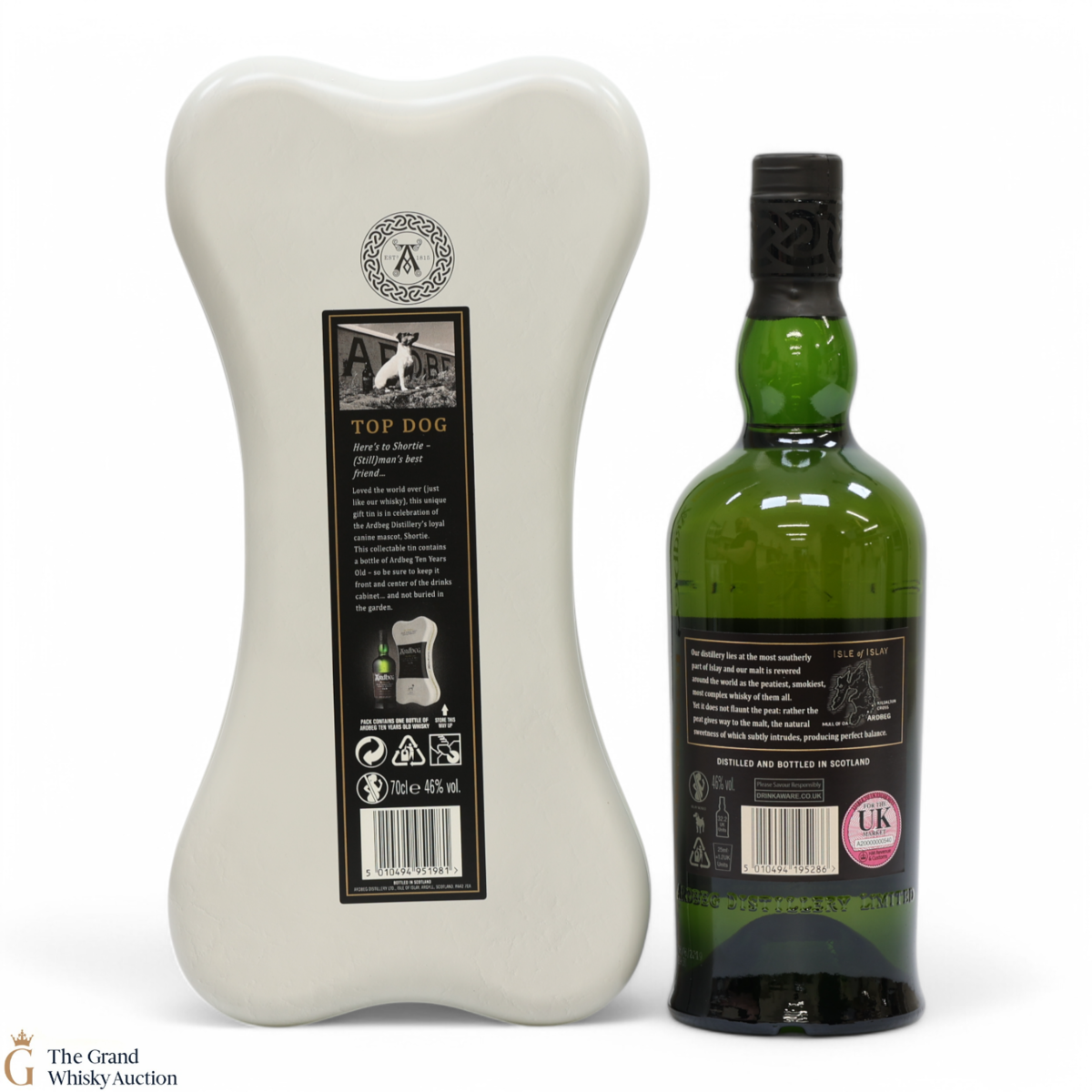 This 70cl Ardbeg 10 Year Old comes in a unique bone-shaped presentation tin to honour the distillery's mascot Shortie.