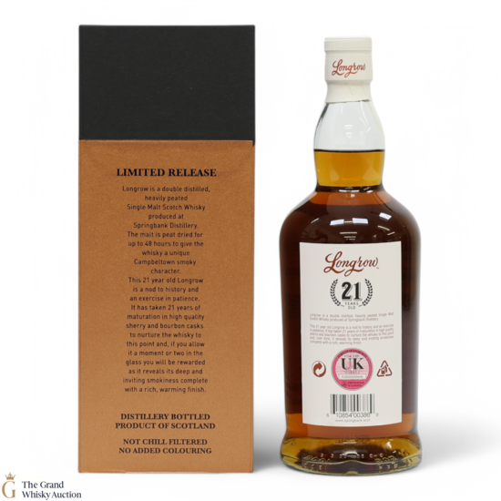 This 21-year-old Longrow 2023, is a limited edition from Springbank Distillery in Campbeltown. The whisky has been matured in bourbon and sherry casks which leaves a very warm finish.