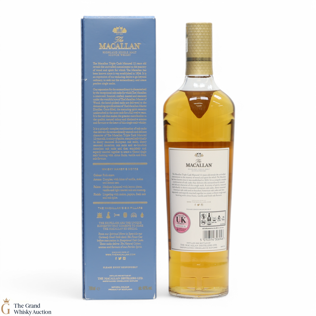 The 12 year old single malt was matured for 12 years and drawn from a combination of European sherry seasoned casks, American sherry seasoned casks and American ex-bourbon casks. It is part of Macallan's Triple Cask range which was launched in 2018, taking the place of the Fine Oak range.