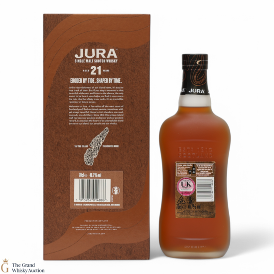 Matured for 21 years in ex-bourbon barrels this bottle 'Tide' by Jura was then finished in hand-selected virgin American white Oak Casks before being bottled in 2022.