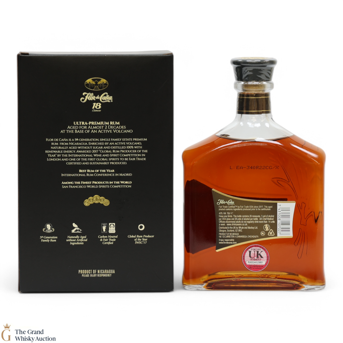 Flor de Caña 18 Year Old Rum is a distinguished Nicaraguan rum renowned for its exceptional smoothness and rich character, created from selected sugarcane and matured for four years. This rum offers a refined experience that is symbolic of the longstanding tradition and adeptness of its creators.