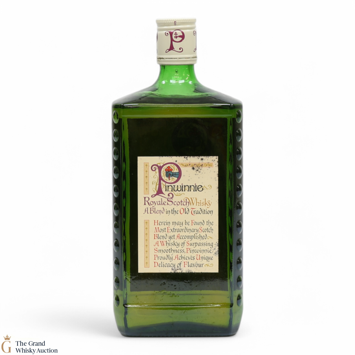 This is an eye-catching older-style bottling of Pinwinnie Whisky. Pinwinnei Royale Scotch Whisky is now discontinued and increasingly hard to find.