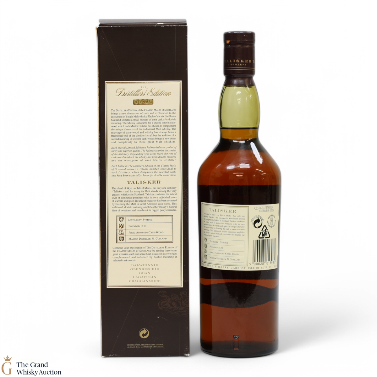 The Distillers Edition is a special release from Talisker, the single malt was double matured with a finishing period in a sweet amoroso cask-wood.