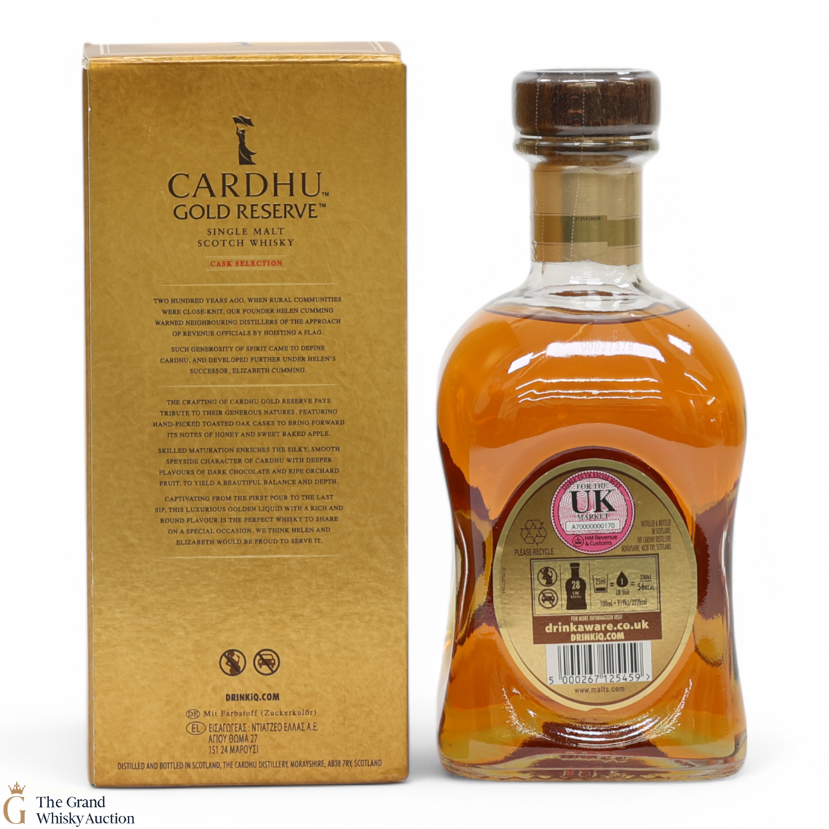 Cardhu is known for being an easy-drinking and sweeter style of whisky. This Gold Reserve Cask Selection has been made with the finest Cardhu casks; the whisky has been aged in toasted oak casks, which has led to notes of toffee apple whisky.