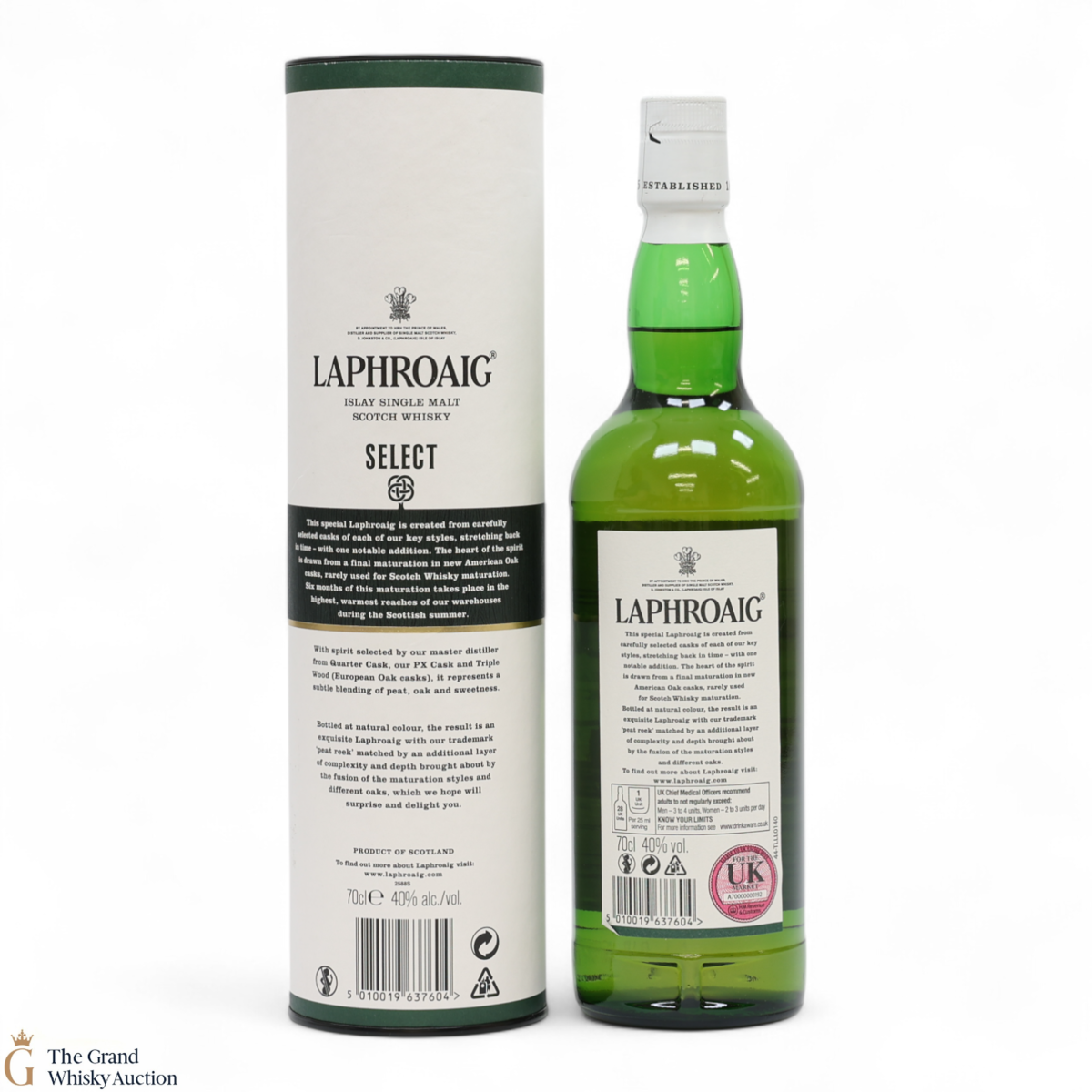 Laphroaig Select has been created using a combination of whisky from a number of different types of casks, including Oloroso Sherry butts, white American oak, Pedro Ximenez seasoned hogsheads, quarter casks and first-fill bourbon casks.