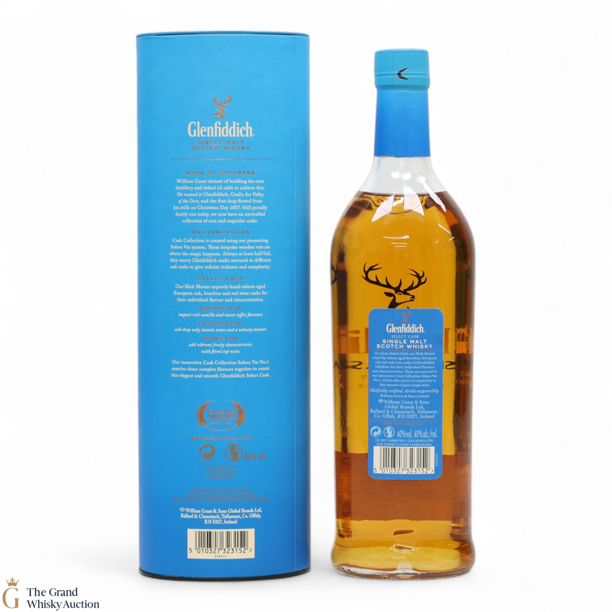 Part of a Glenfiddich's Casks Collection, Select Cask has been matured in a combination of European oak, ex-bourbon and ex-red-wine casks specially selected by malt master Brian Kinsman. It was then married in a solera vat. This is a 1 litre bottling.