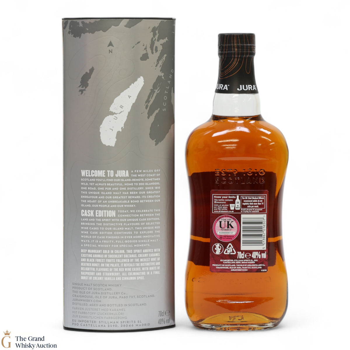 Jura Cask Editions celebrate flavours of selected European wine with the island malt and this unique red wine cask edition continues to explore the world of cask finishes in ever more innovative ways.