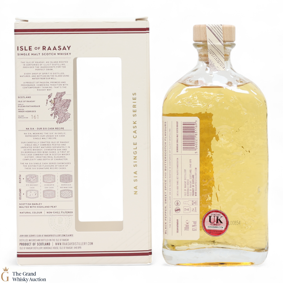 This fantastic single malt from the Isle of Raasay Distillery is part of their single-cask series - Na Sia. Matured in a peated ex-rye whiskey cask, this spirit was created to show the distinctive styles and characteristics of the 6 Isle of Raasay single malt recipe casks. Bottled at 62.7% ABV.