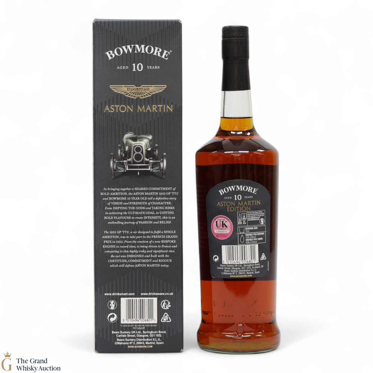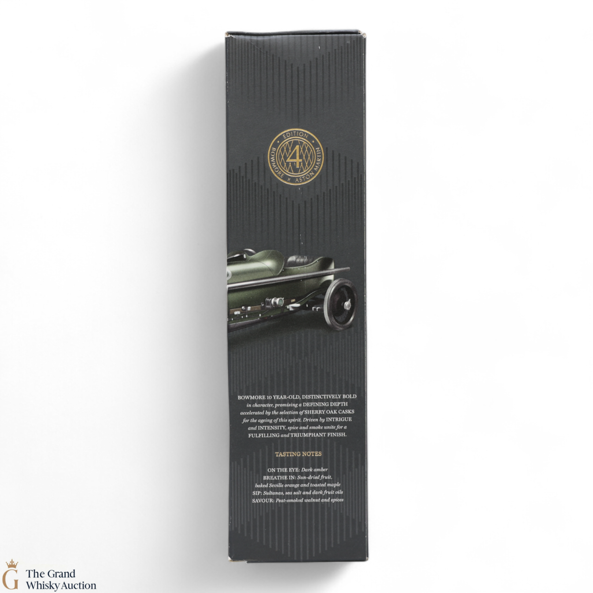 Edition 4 of the Bowmore x Aston Martin collaboration celebrates the iconic Aston Martin GP 'TT2'. This car was designed to take part in the French Grand Prix in 1922, a highly risky and significant race. A great pairing for the dark and intense 10-year-old, with intense depth from the marriage of Spanish oak sherry casks and hogsheads.