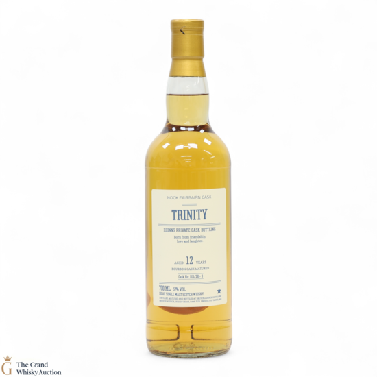 This is a private cask bottling of Bruichladdich. Aged for 12 years in a Bourbon cask #R11/281-3 before being bottled at 57% ABV and labelled Trinity.