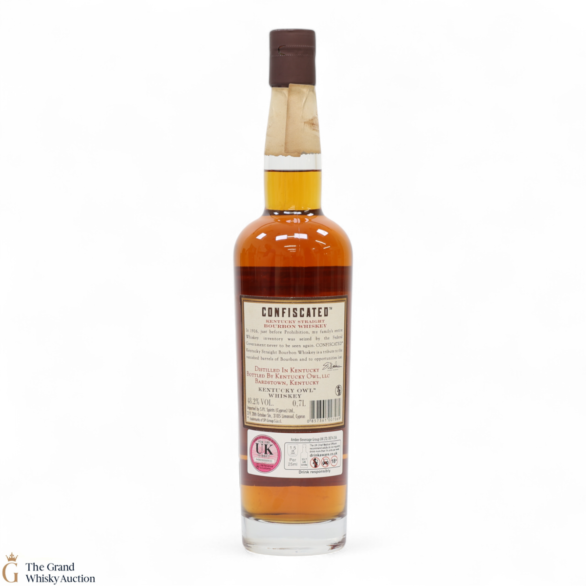 It was produced with casks sourced from various distilleries and blended by Dixon, and was bottled at cask strength. Confiscated pays tribute to the barrels the government seized from Dixon's great-great-grandfather, C.M. Dedman, just ahead of Prohibition. Those barrels were never seen or tasted again. More than a century later, Confiscated was the first offering from Kentucky Owl that was available in 50 states in the US.