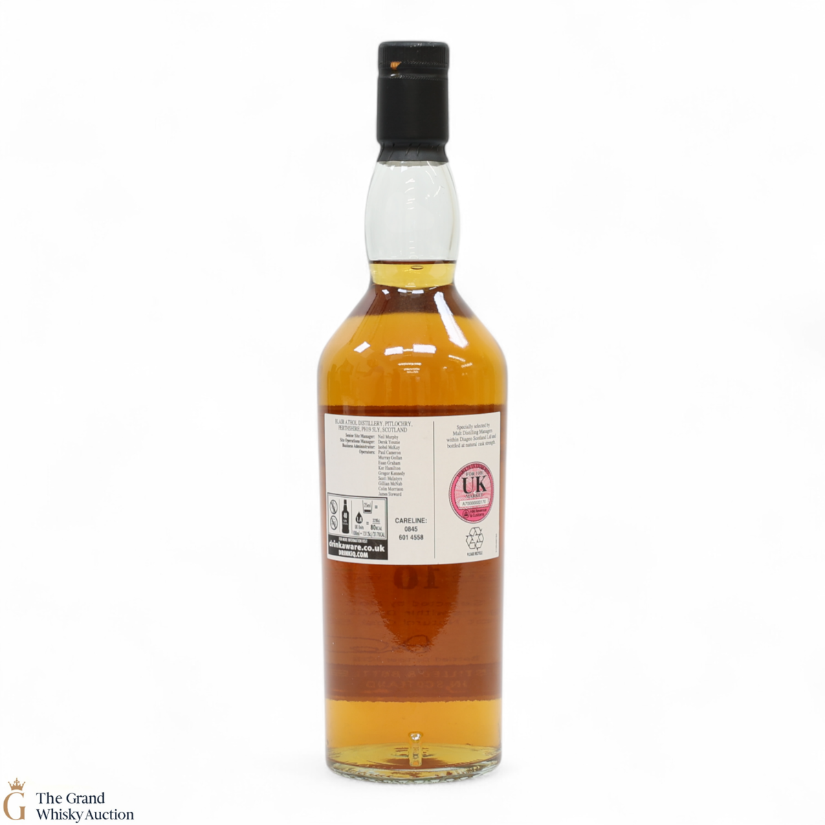 Due to the various ages of bottles and their seals, the condition of liquid is at the buyer's discretion and no claim can be lodged against failure/leakage in transit. Loss and breakage cover is available at 3% of the hammer price as standard. If the lot is not insured, no claim can be lodged against the courier or The Grand Whisky Auction for breakage or loss in transit.