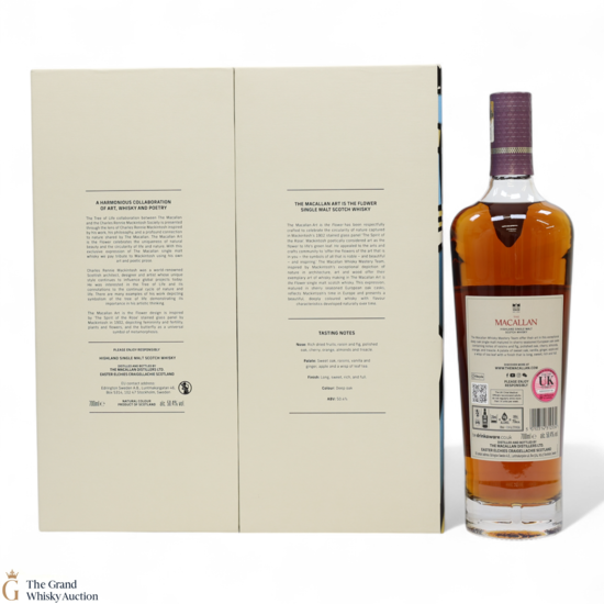 Inspired by Mackintosh's exceptional depiction of nature in architecture, art and design, The Macallan Whisky Mastery Team's exemplary art of whisky making is expressed in The Macallan Art is the Flower single malt scotch whisky.