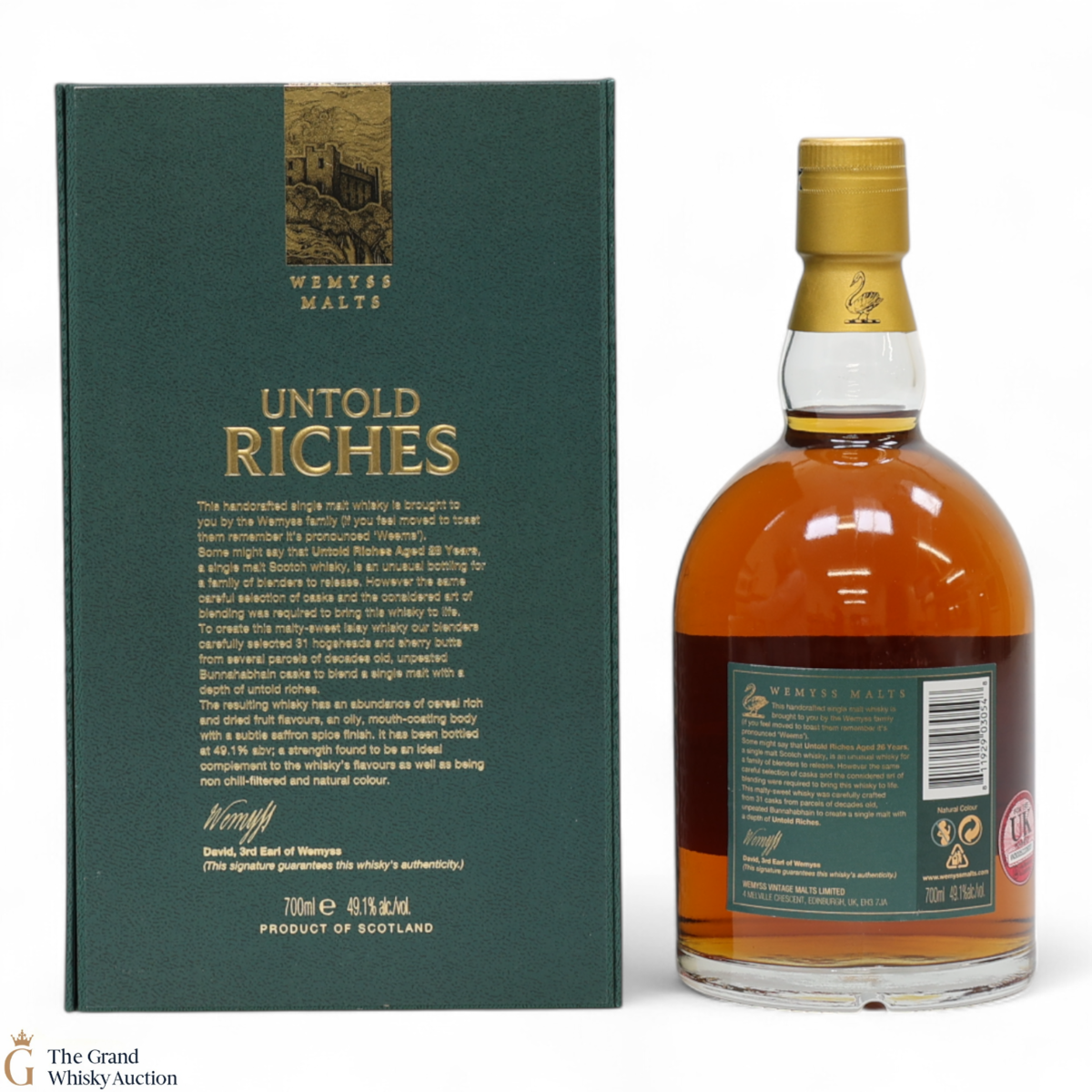 Due to the various ages of bottles and their seals, the condition of liquid is at the buyer's discretion and no claim can be lodged against failure/leakage in transit. Loss and breakage cover is available at 3% of the hammer price as standard. If the lot is not insured, no claim can be lodged against the courier or The Grand Whisky Auction for breakage or loss in transit.