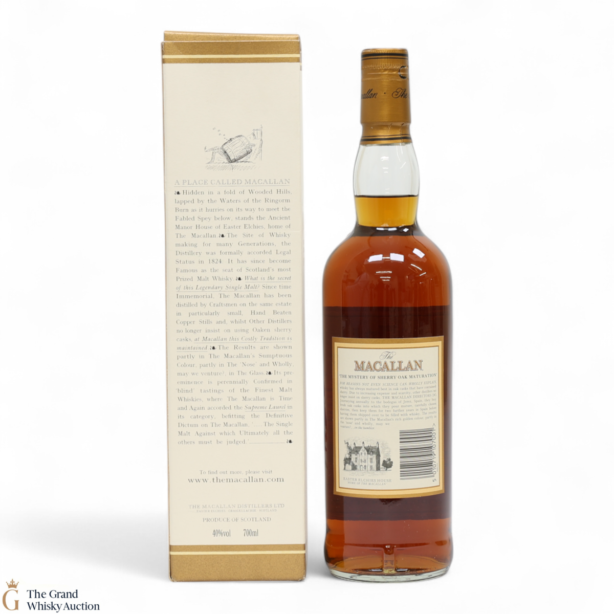 An old bottling of Macallan 10-year-old, which has been exclusively matured in sherry oak casks. Bottled in the early 2000s.