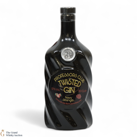 A bottle of Navy Strength Twisted Gin from Professor's Club. Bottled at 57% ABV.