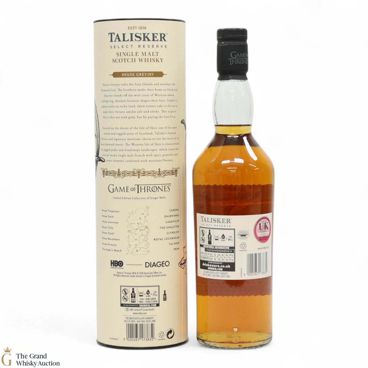 Part of the Game of Thrones Single Malts Collection - Talisker, a coastal distillery with signature maritime character, has been perfectly paired with House Greyjoy, which rules over the Iron Islands and worships the Drowned God.
