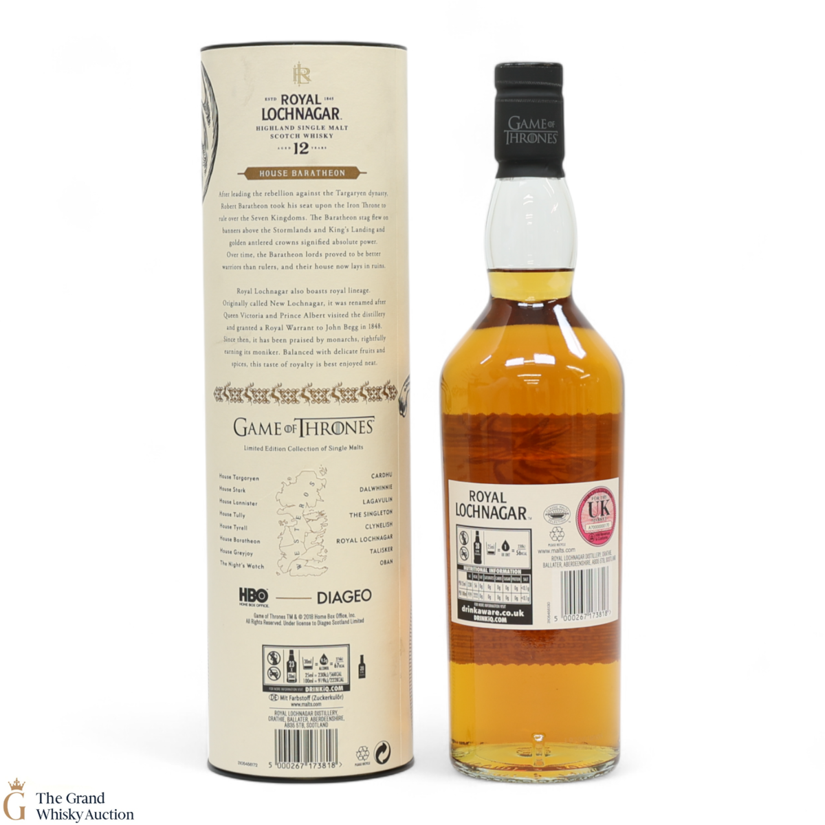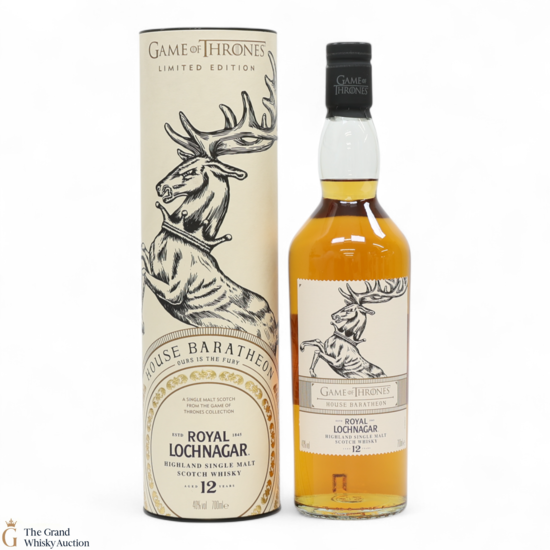 This is a limited-edition 12 year old single malt from Royal Lochnagar and it is part of Diagio's 2018 collaboration with HBO. Each single malt in the series relates to the land of houses of the Game of Thrones television series. The Royal Lochnagar bottle is decorated with a rampant black Stag, the sigil of House Baratheon that once flew on banners above the Stormlands and King’s Landing signifying absolute power.