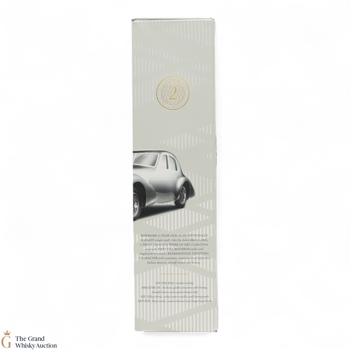 Edition 2 of the Bowmore x Aston Martin collaboration celebrates the iconic Aston Martin 1939 Atom. A working concept car, iconic and definitive for its time. A great pairing for the golden and elegant 15-year-old, married in 1st fill bourbon casks to create a refreshing, silky peat-smoked character with notes of citrus. Bottled at 43% ABV.