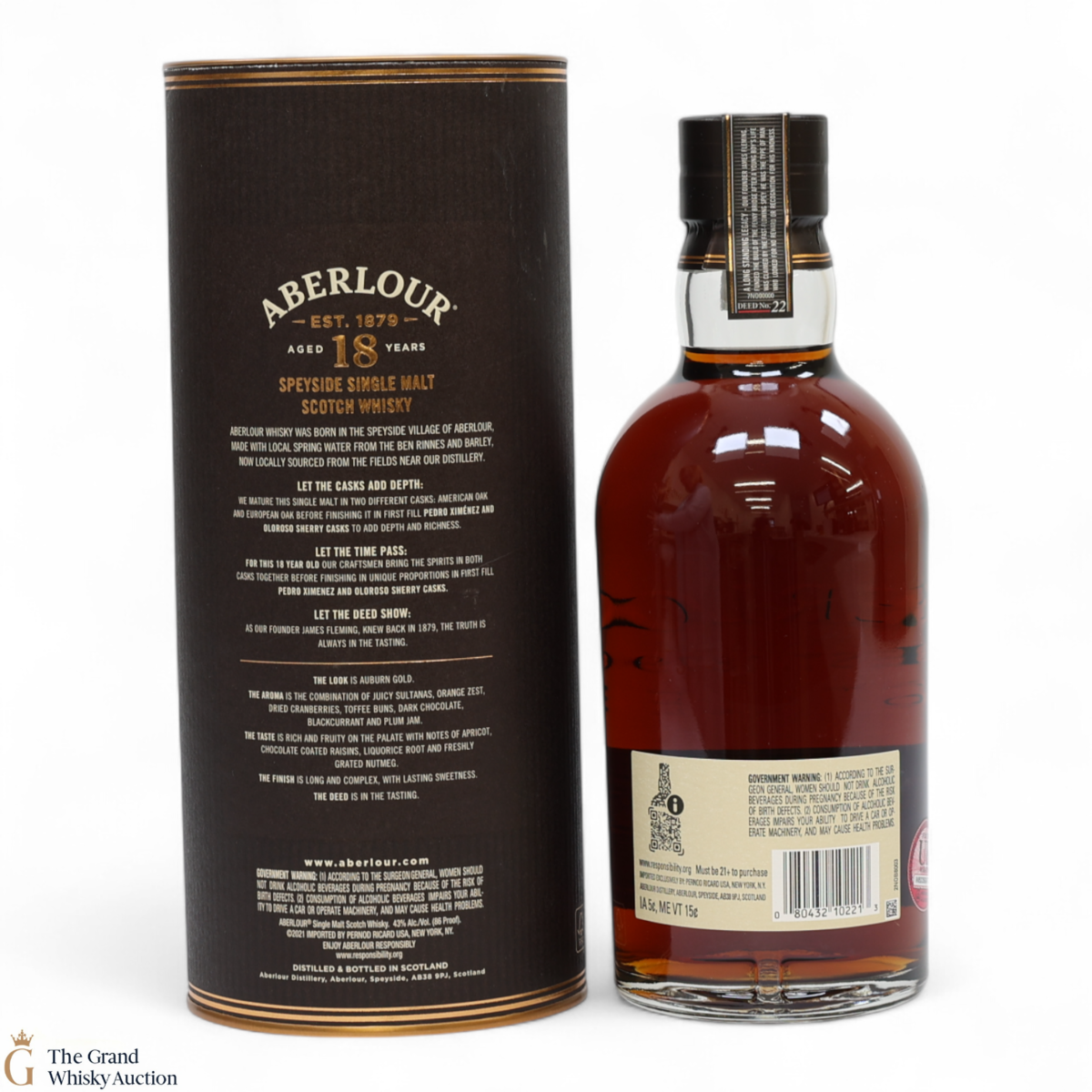 A bottle of Aberlour 18-Year-Old - described by the distillery as the 'perfect expression of our Founder's motto "Let The Deed Show".