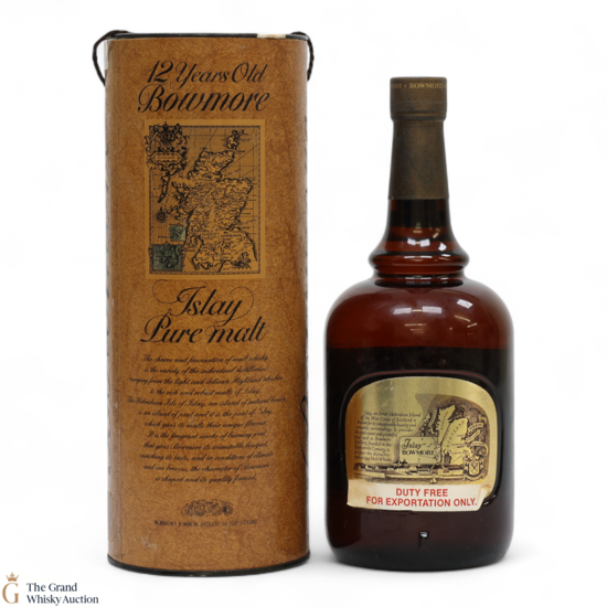 This is a 1L bottling of 12-Year-Old Bowmore. This single malt has coastal notes with gentle peat.