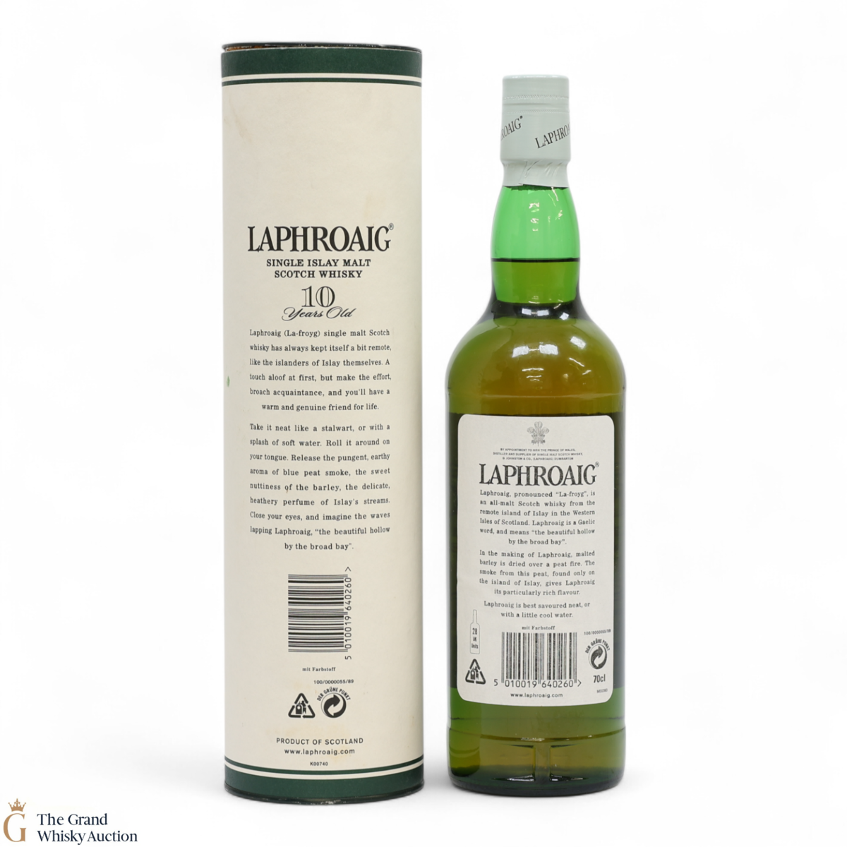 A 70cl of the medicinal 10 year old from Islay's bestselling distillery, Laphroaig. In making Laphroaig, malted barley is dried over a peat fire. The smoke from this peat, found only on Islay, gives Laphroaig its particularly rich flavour.
