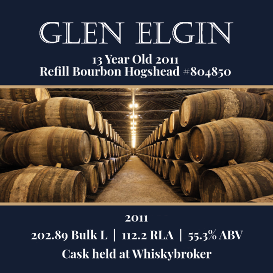 Glen Elgin - 13 Year Old 2011 - Refill Bourbon Hogshead #804850 - 202.89 Bulk L 55.3% ABV| Held In Bond